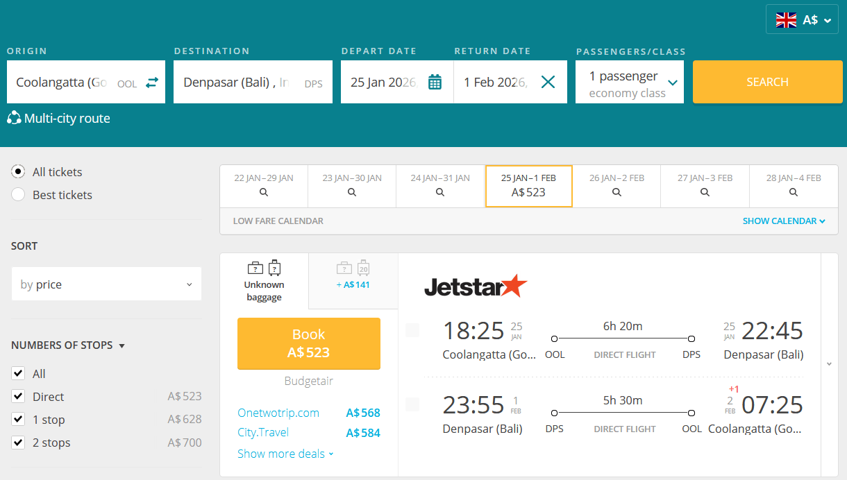 JETSTAR is offering discounted nonstop flights from Gold Coast, Australia to Bali, Indonesia starting at only A$523 for a round trip!