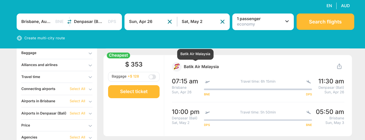 Weโve uncovered an incredible Economy Class round-trip deal from Australia to Denpasar (Bali) for just A$ 353, opening the door to lush rice terraces in Ubud, stunning sunsets at Tanah Lot, world-class beaches in Uluwatu, and vibrant nightlife in Seminyak.