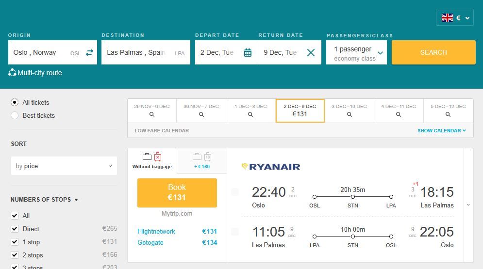 Currently, you can book your round-trip ticket from Oslo, Norway to Las Palmas, Gran Canaria, Spain from only โฌ131.