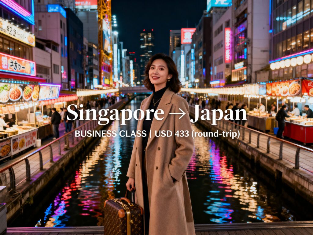 We found a deal in Business Class from Singapore to Japan for just $871 (round trip).