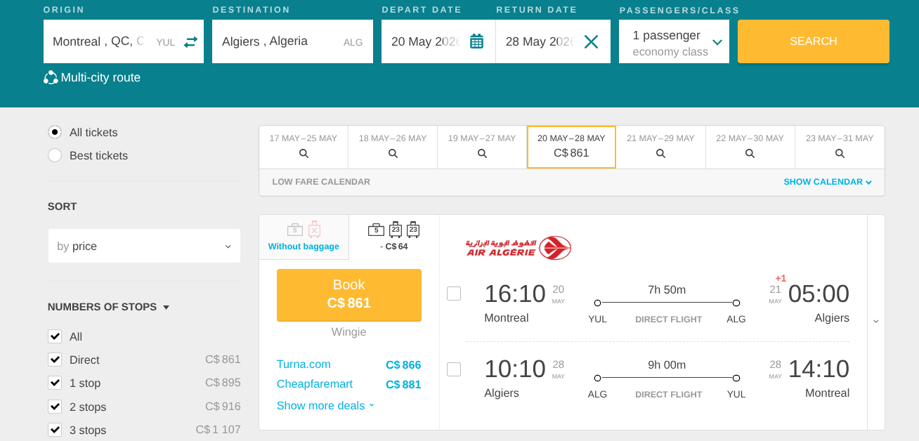 AIR ALGERIE is offering discounted nonstop flights from Montreal, QC, Canada to Algiers, Algeria starting at only CA$861 for a round trip!