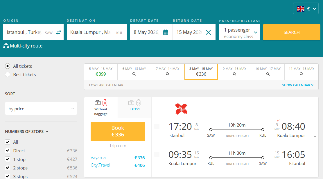 AIR ASIA is offering you currently nonstop flights from Istanbul, Turkey to Kuala Lumpur, Malaysia for an unbeatable €336 round trip.