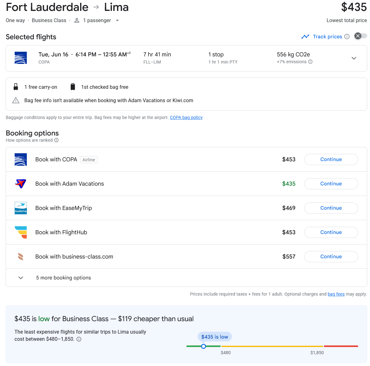 COPA AIRLINES is offering at the moment cheap BUSINESS CLASS tickets departing from Fort Lauderdale, FL, USA to Lima, Peru for only US$435 (one way).
