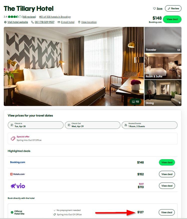 Book your stay at this top-rated 4* The Tillary Hotel Brooklyn in New York City, USA with 38% OFF! for just US$ 127 per room/night for 2 pers.